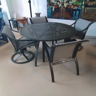 2 Arm Chairs, 2 Swivel Rockers, & a 54" Pylon Table